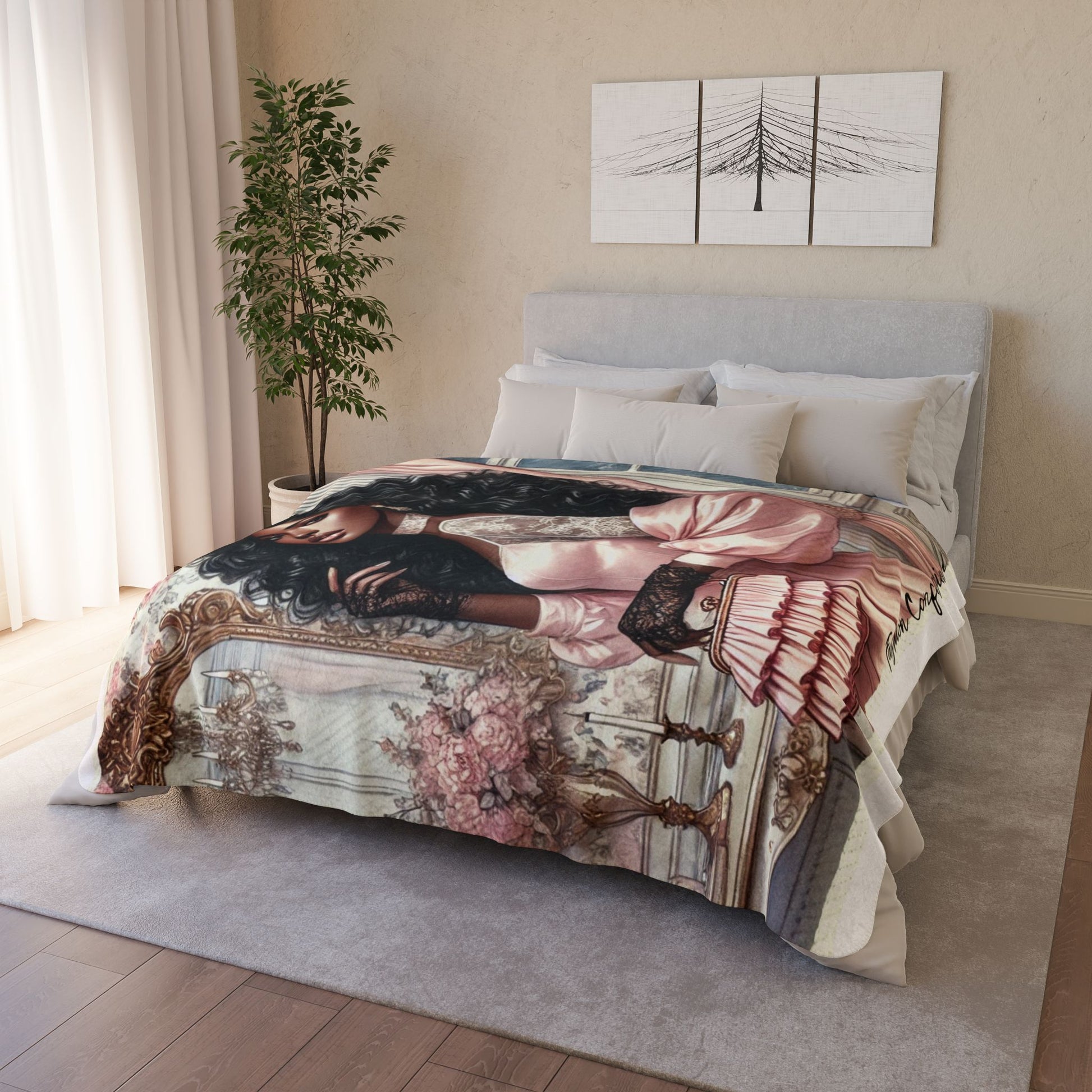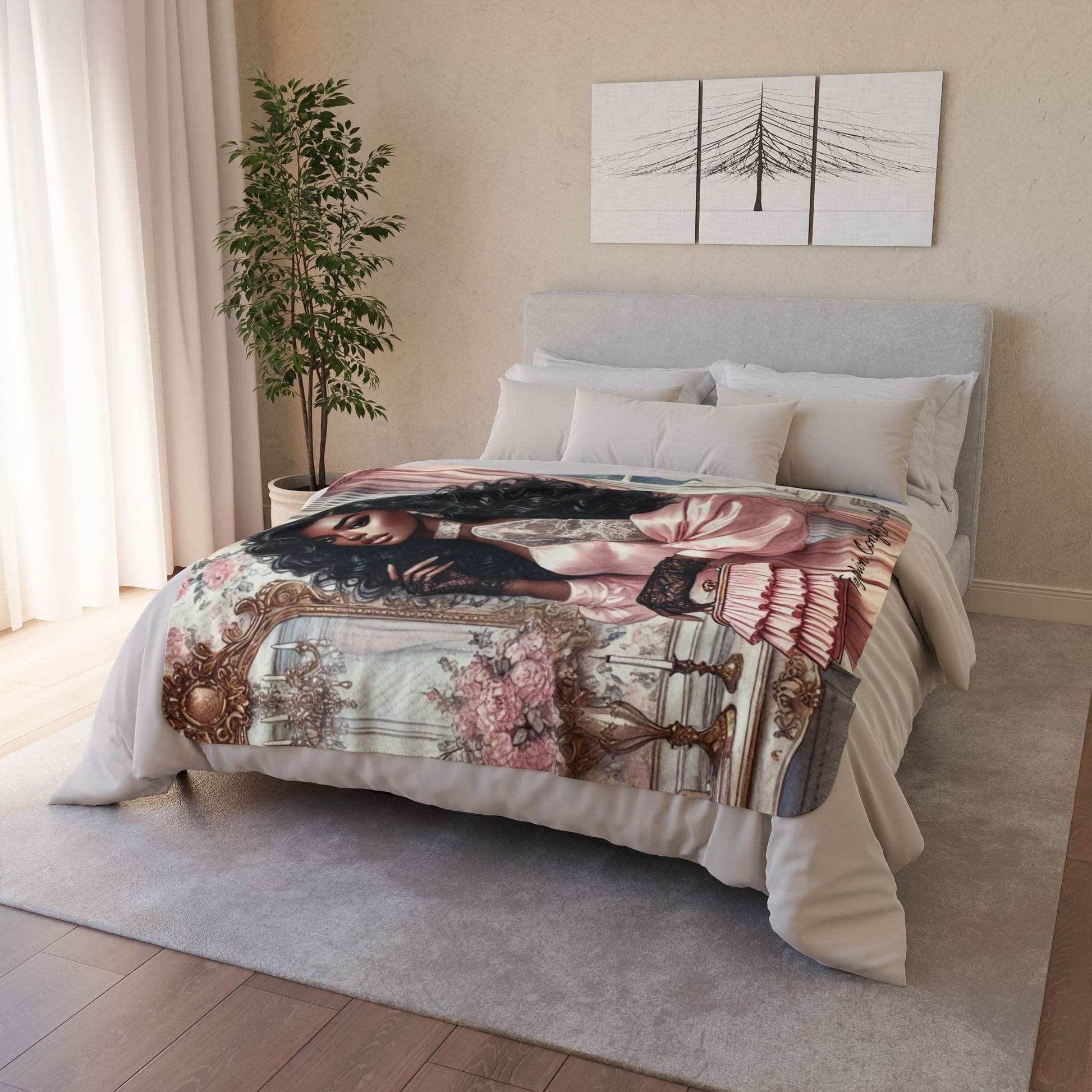 Sherpa Blanket - Fashionable Woman in Pastel Pink Dress, Standing in an English Style Powder Room Design