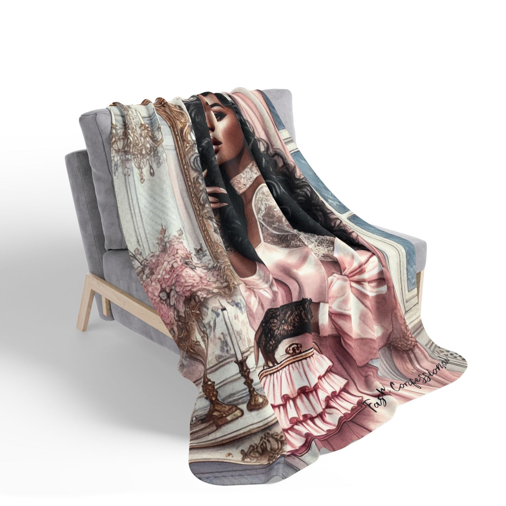 Wrap yourself in luxury with this Fleece Sherpa Blanket featuring a fashionable woman ready for tea. The blanket is thick, soft to the touch, and vibrant in colors, making it perfect for cozying up on the couch during chilly evenings. Ideal for those who appreciate elegant and stylish home decor, this blanket is a must-have for tea lovers and English style enthusiasts. Perfect for gifting during birthdays, holidays, or as a housewarming present.