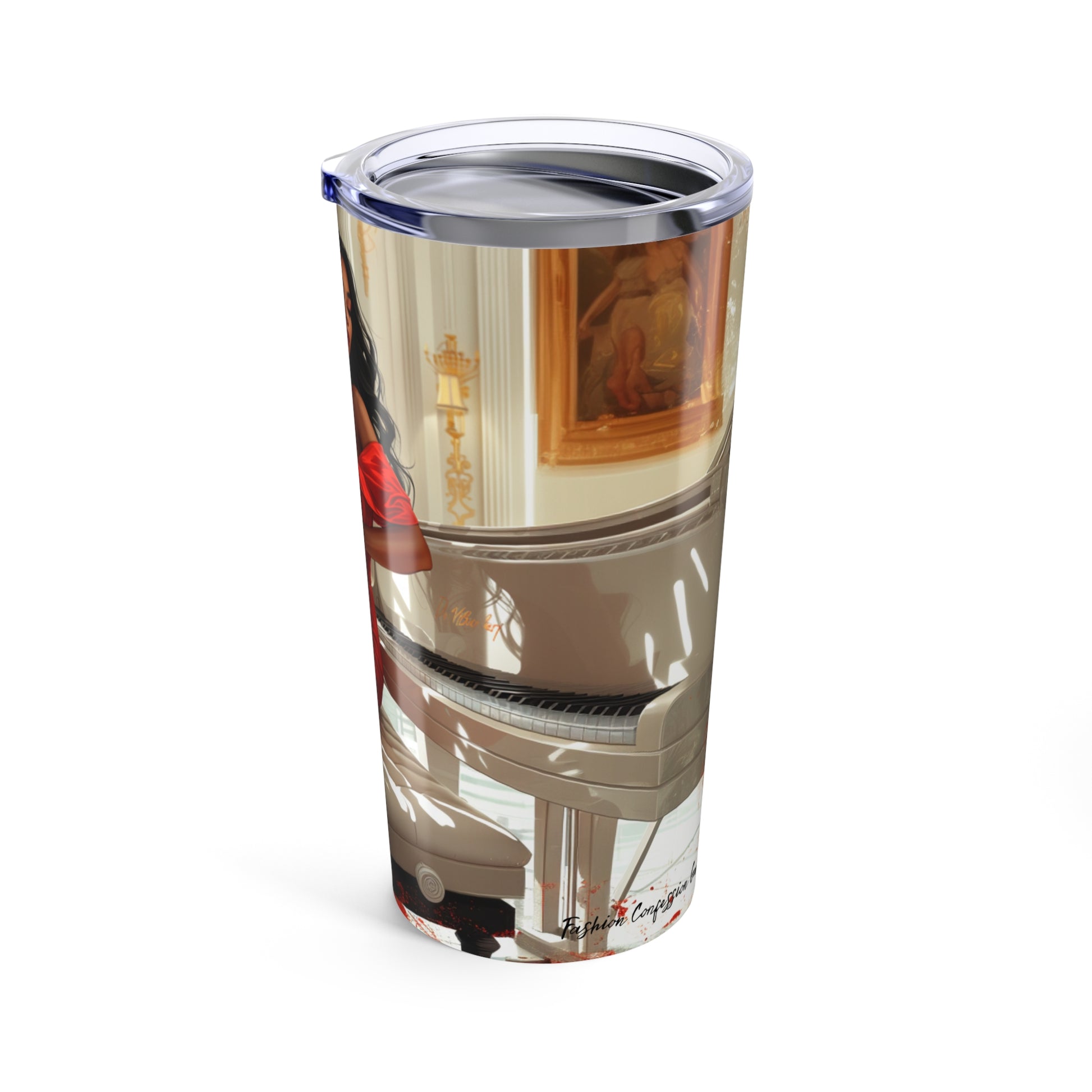 Elegant tumbler featuring a fashionable woman sitting at the piano, perfect for entertaining guests in luxurious settings. Ideal for those who enjoy gatherings and elegant decor, perfect for special occasions and events